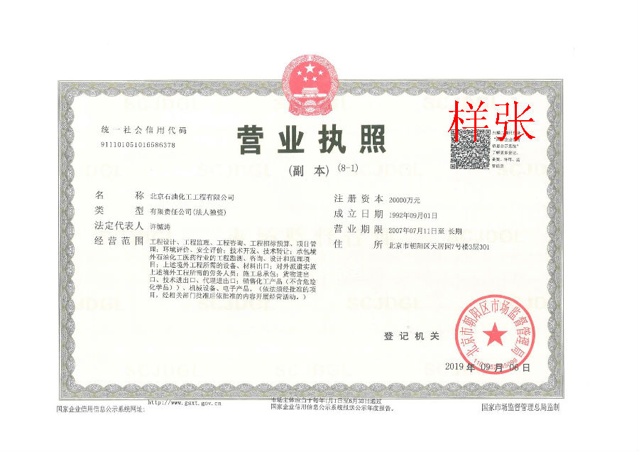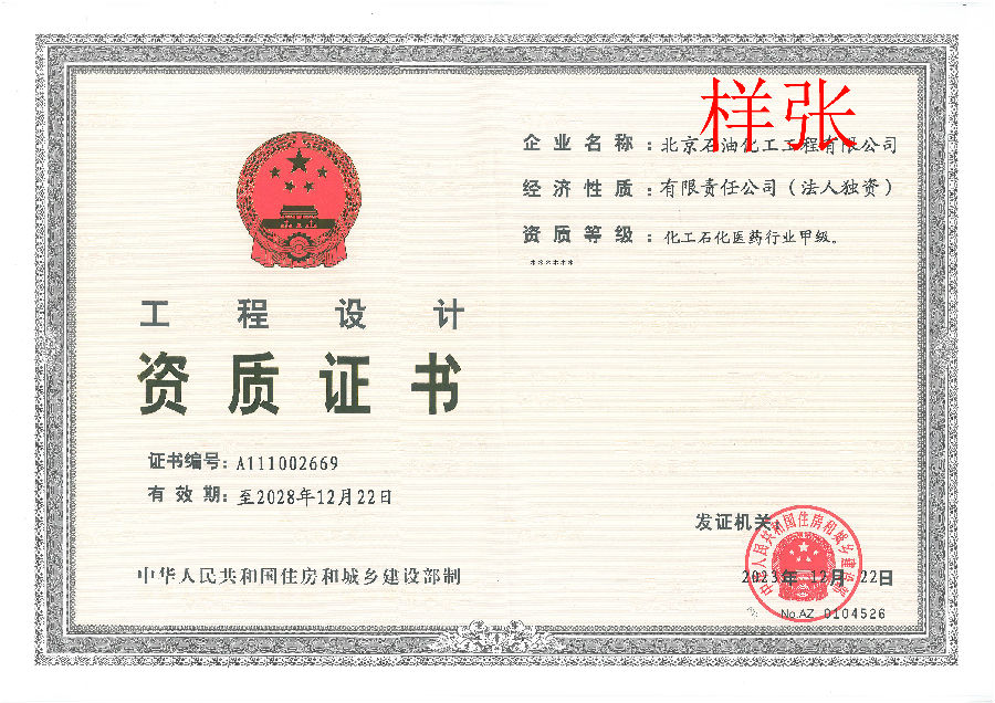 工程設(shè)計(jì)資質(zhì)證書(shū)(化工石化醫(yī)藥行業(yè)甲級(jí))
