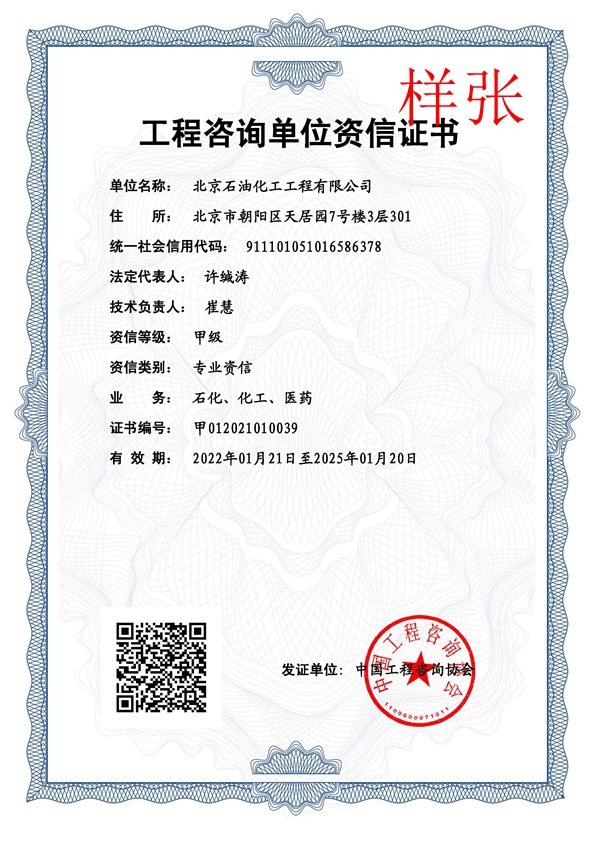 工程咨詢單位甲級(jí)資信證書(shū)(石化、化工、醫(yī)藥)