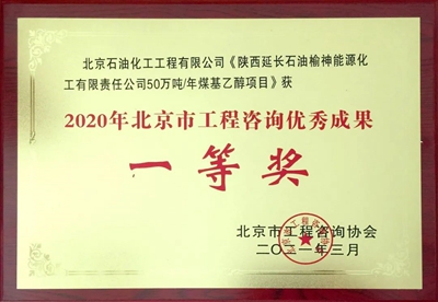 近日,從北京市工程咨詢協會傳來喜訊,由公司申報的《陜西延長石油榆神能源化工有限責任公司50萬噸/年煤基乙醇項目》和《延969井區地面集輸擴能改造工程》分別獲得2020年北京市工程咨詢優秀成果一等獎和三等獎。