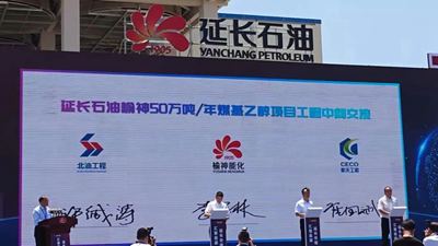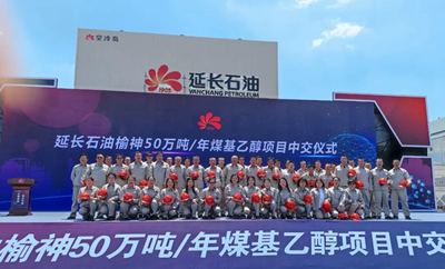 6月30日,北京石油化工工程有限公司(簡稱:北油工程)工程總承包的陜西延長石油榆神能化50萬噸/年煤基乙醇項目舉行了隆重的中交儀式,標志著全球首套合成氣制乙醇工業化裝置由建設階段全面轉入試車準備階段。陜西省國資委副主任李凱,副主任汪亮;榆林市委常委、副市長楊向喜;榆神工業區管委會主任孫守洋;延長石油集團黨委書記、董事長蘭建文;總經理張愷颙;陜西省、榆林市、榆神工業區有關部門領導及項目參建單位負責人等共同出席了儀式。