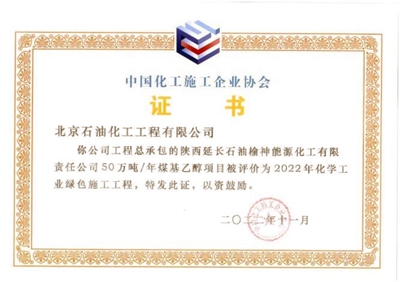 喜報(bào)!公司總承包榆神乙醇項(xiàng)目獲得多項(xiàng)榮譽(yù)