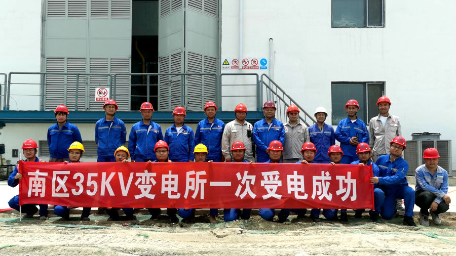 南區(qū)35kV變電所內(nèi)設(shè)35kV和10kV配電裝置、2臺31500kVA 35/10kV主變、6臺2500kVA干式變壓器和低壓配電柜,為南區(qū)所有裝置、輔助設(shè)施及公用工程單元用電設(shè)備供電,其兩回路電源分別來自110kV正泰甲醇變電站及110kV正泰臨白變電站,通過35kV電纜接至變電所內(nèi)35kV開關(guān)柜。建設(shè)期間,項(xiàng)目組精細(xì)化管理,有效控制設(shè)備訂貨、巡檢催交、設(shè)備安裝及調(diào)試等環(huán)節(jié),為本次一次受電成功打下堅(jiān)實(shí)的基礎(chǔ)。