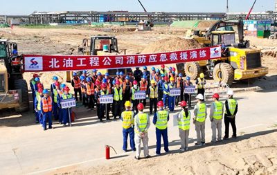 近日,由北京石油化工工程有限公司EPC總承包的陜西延長(zhǎng)石油榆林凱越煤化有限責(zé)任公司50萬(wàn)噸/年甲醇制乙醇項(xiàng)目開(kāi)展動(dòng)火作業(yè)消防應(yīng)急演練。業(yè)主方、項(xiàng)目各參建方代表觀摩了此次演練。
