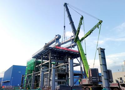 高/低溫回?zé)崞魇琼?xiàng)目中安裝高度最高、重量最大的設(shè)備,為確保吊裝順利完成,項(xiàng)目組與業(yè)主及各參建方多次召開吊裝專題會,細(xì)化吊裝作業(yè)施工方案、應(yīng)急預(yù)案和安全技術(shù)措施,并組織相關(guān)專家對吊裝方案進(jìn)行會審。項(xiàng)目組嚴(yán)格執(zhí)行吊裝流程,安全技術(shù)交底,整個(gè)吊裝過程井然有序。